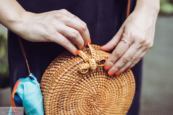 Otro de los accesorios que me veréis bastante por aquí es el bolso redondo de ratán. Los bolsos de yute o paja han sido otra de grandes tendencias de esta primavera - verano y yo no me pude resistir al bolso balinés de forma redonda ¡Una monada! Podéis encontrarlo muy similar en cantidad de tiendas, pero este en concreto es de Treboli, con forro interior y correa de piel en color marrón.