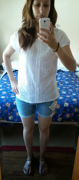 Opté por un pantalón corto y una camiseta blanca calada, a ver que os parece: