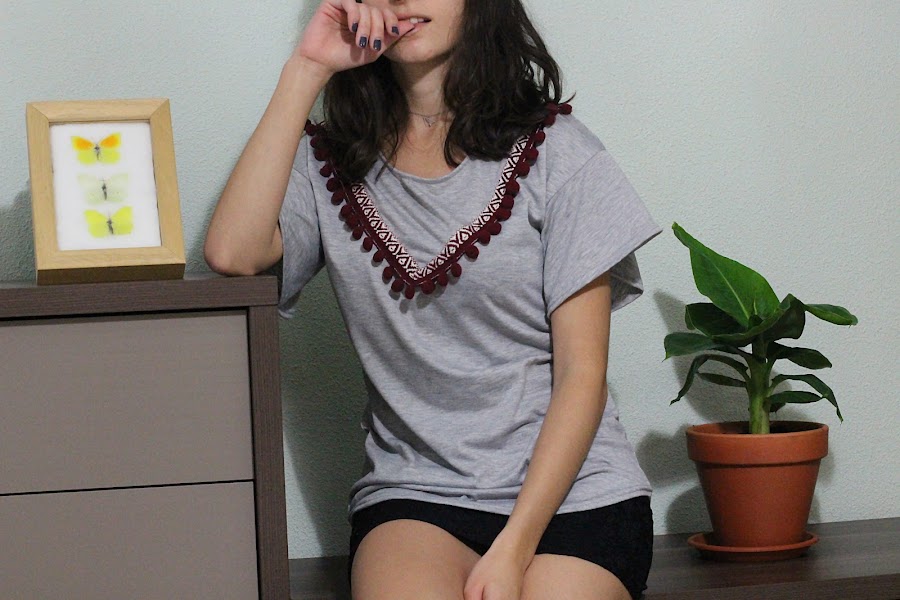 También me pedí esta camiseta con un rollo más étnico que me encantó! La tela es finita pero no se transparenta como la otra y además es gustosita. En cuanto al bordado y los pompones están bien enganchados así que no hay peligro de que se descosan.