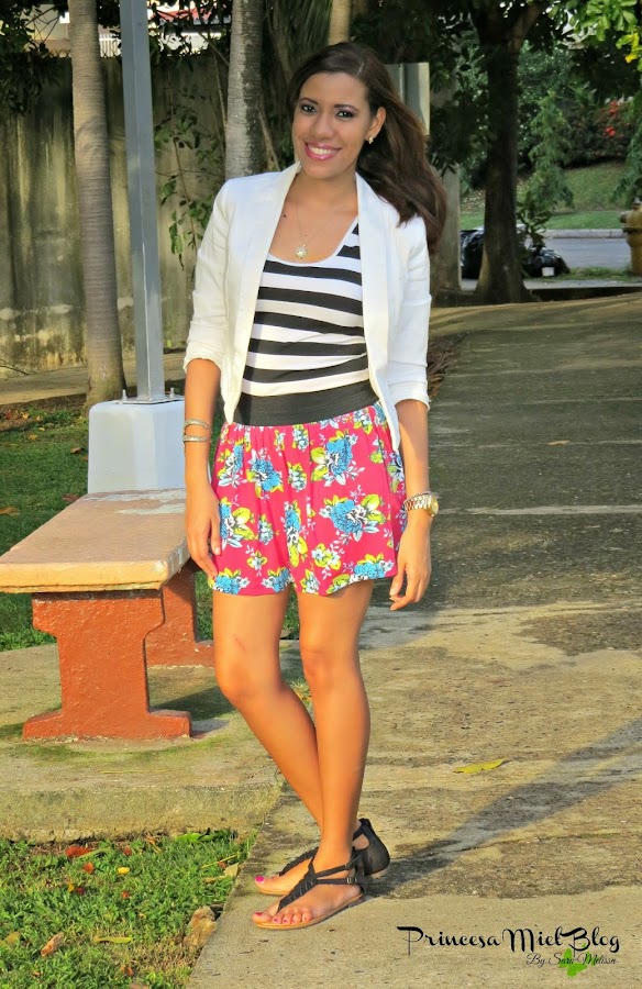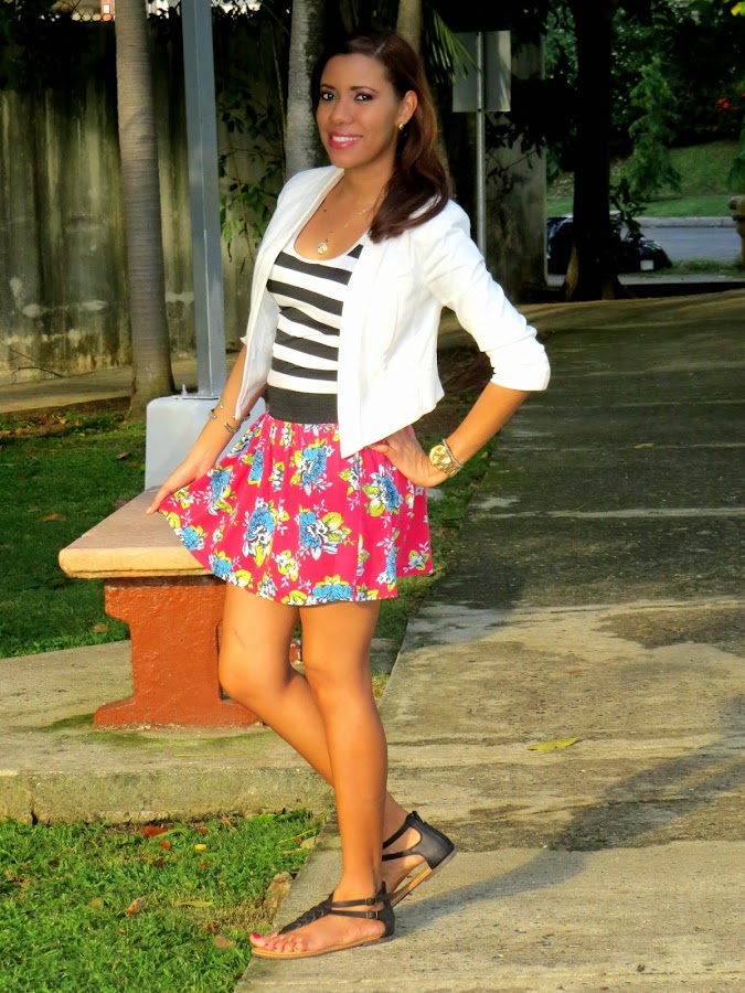 Para este Get the Look, intenté recrear (a mi manera) un outfit en el cual ella hizo una mezcla arriesgada de estampados; utilizando los prints de rayas y el floral.