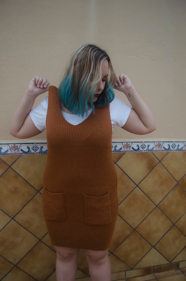 También me pedí este vestido/pichi de tejido jersey en color mostaza amarronado super abrigadito para este tiempo.