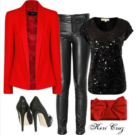 Este sin embargo es ya mas llamativo y arreglado. Taconazos, top de lentejuelas y blazer y clutch rojos. Esta pensado para la comida del día de Navidad o Año Nuevo por ejemplo, que seguro que vas a casa de tus padres o de los de tu pareja a comer y hay que esta bien vestida por que es un día festivo y la verdad que apetece ponerse bien guapa, a que si?