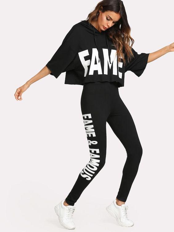 Si amas verte femenina en todo lugar, este tipo de outfits son para ti. El combinar leggings con tops, tenis o incluso chamarra te hará lucir impecable. Lleva una chamarra para usar fuera del gimnasio que combine a la perfección con tu atuendo y que tenga ese toque cool. Pero no caigas en el error de ponerte todo del mismo color (a menos que sea negro).PRENDAS CON TEXTOS PARA EL GYM