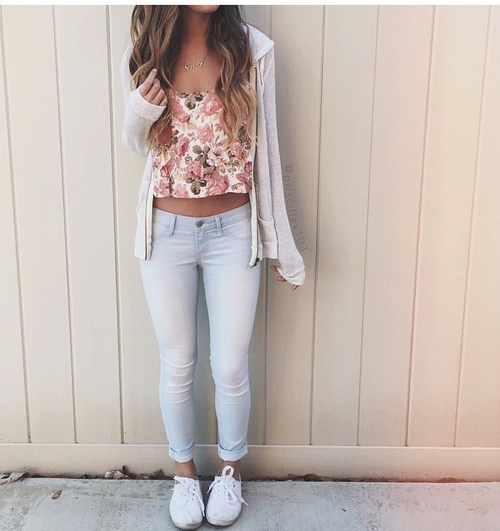 Si prefieres no enseñar mucho, unos jeans con blusas ya sea estampadas, de holanes, o hasta las más sencillas, serán perfectas para ti. Sólo no olvides poner un poco de color completando con accesorios como pulseras y bolsos.