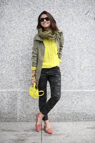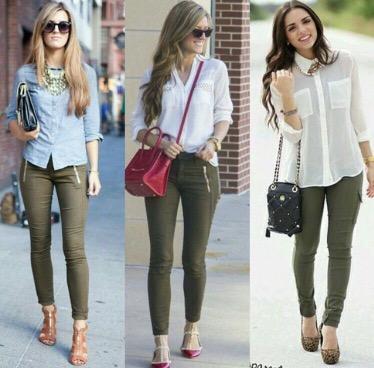 ¡Anímate a combinar! … Lo ideal es que utilices sólo un toque de verde militar en tus prendas y no abuses de los accesorios