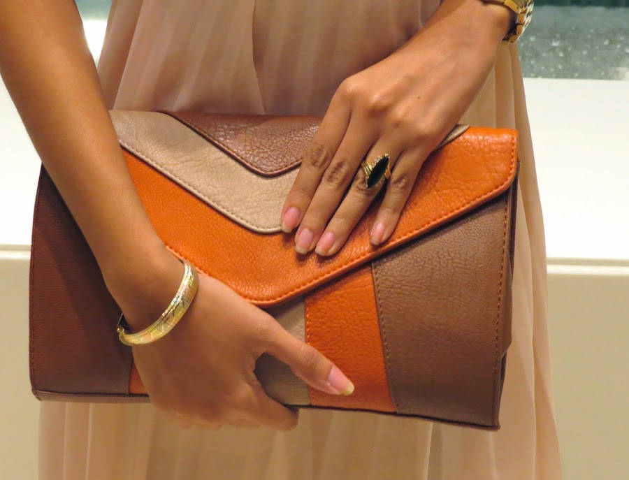 Acompañé este vestido en color rosa pálido, con zapatos de tacón en color nude, y un clutch en con colores terracota y nude. Los accesorios en color dorado para darle más vida y elegancia al look. Considero que la correa en color dorado transformó el vestido al igual que marcó mi cintura por lo cual hizo que con lo asimétrico del vestido me viera más alta.