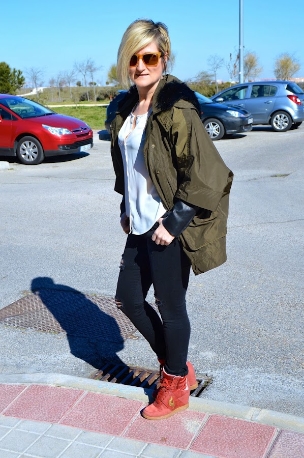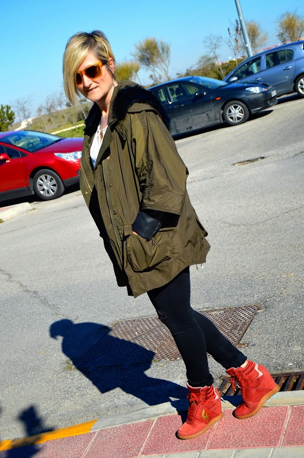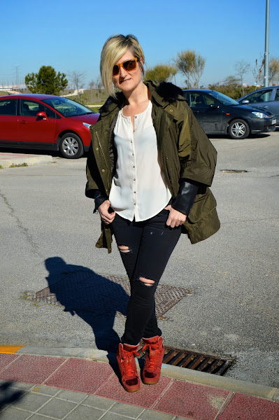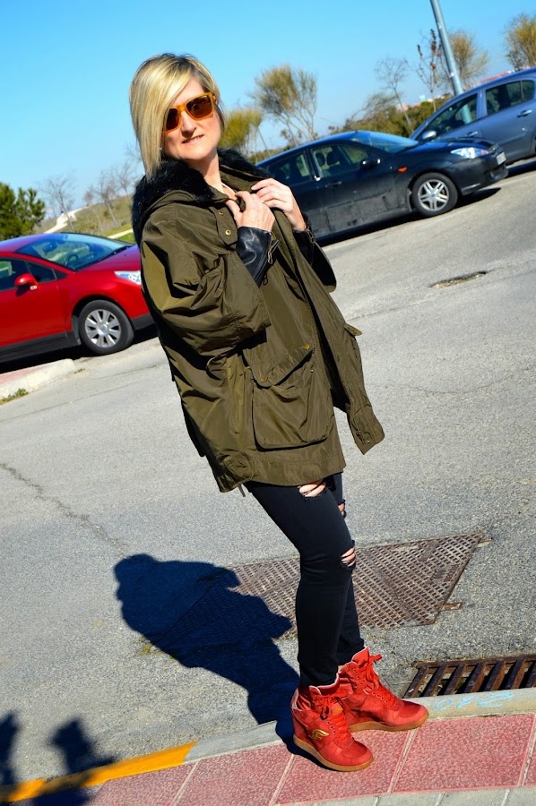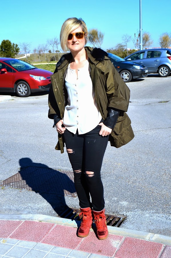 Yo creo que casi todas tenemos en nuestro armario una parka en color kaki. Ésta me gustó por su corte oversize y además lleva un forro caliente que cuando hace menos frío se puede quitar y me sirve de trench.