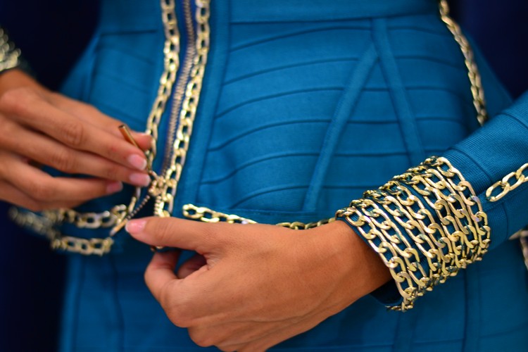 Conjunto Azul Peplum Bandage: Motufashion/Aquí.