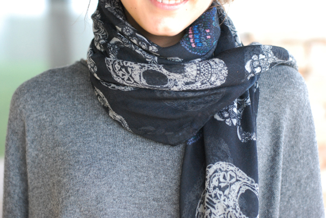 Lastly and for adding some print to the outfit, the skull patterned scarf I have from the beginning of this season.