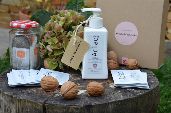 Cuando recibí la caja no tenia ni idea de lo que me esperaba, porque no contentos con hidratar mi piel desde el exterior con ACILAC, también me proponían un relajante plan para combatir la sequedad desde el interior con el cuqui-tarro lleno de tila (filtro incluido) y unas cuantas nueces.
