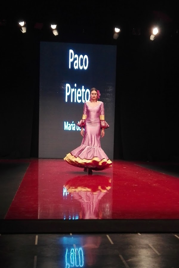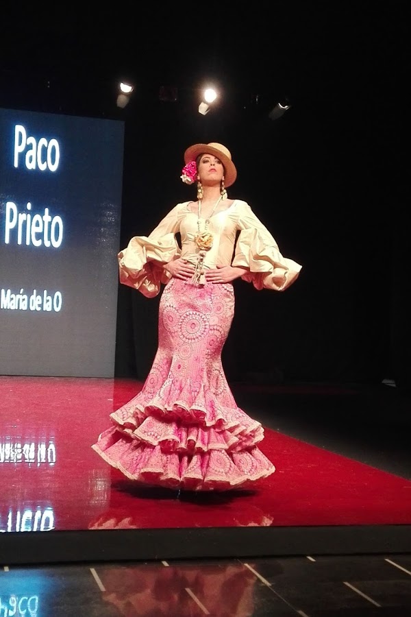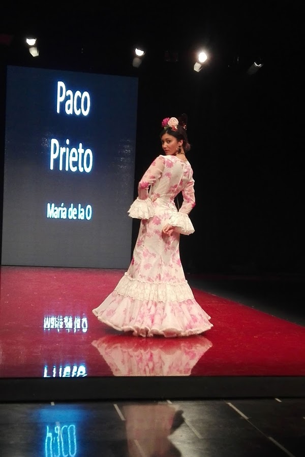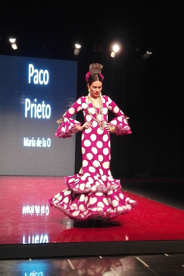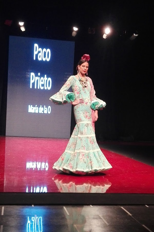 María de la O es el nombre elegido por Paco Prieto para su nueva colección, que derrocha elegancia y finura en cada uno de sus diseños, todos ellos de corte sirena que se ajustan al cuerpo de la mujer flamenca. En ella encontramos estampados florales, lunares y maxi lunares, encajes, volantes y un sin fin de colores, desde los más vibrantes como el fucsia hasta los más pasteles como el celeste o el rosita empolvado.