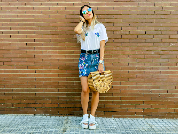 La he combinado con una falda denim con estampado de pintura de colores de ZAFUL y mis sandalias de plataforma y lazo de JESSICA BUURMAN. Pero además, os traigo unos complementos muy especiales, con un bolso super original de bambú, que seguramente ya habréis visto en miles de fotos de Instagram, porque se lleva muchísimo! Yo no he podido resistirme a él y aquí lo tengo! Es de JESSICA BUURMAN y es que estoy enamorada de esta tienda! Por cierto, está de sorteo en Instagram, por si queréis participar!!