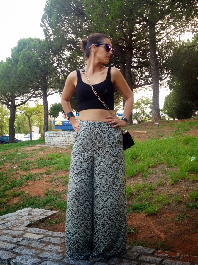 Good night loves! We are near of the weekend. The outfit I show you today, the protagonist is the palazzo pants. When I saw them, I fall in love. Today I wear it with a black crop top, to center all the attention in them. A basic outfit, but it"s perfect for the weekend.