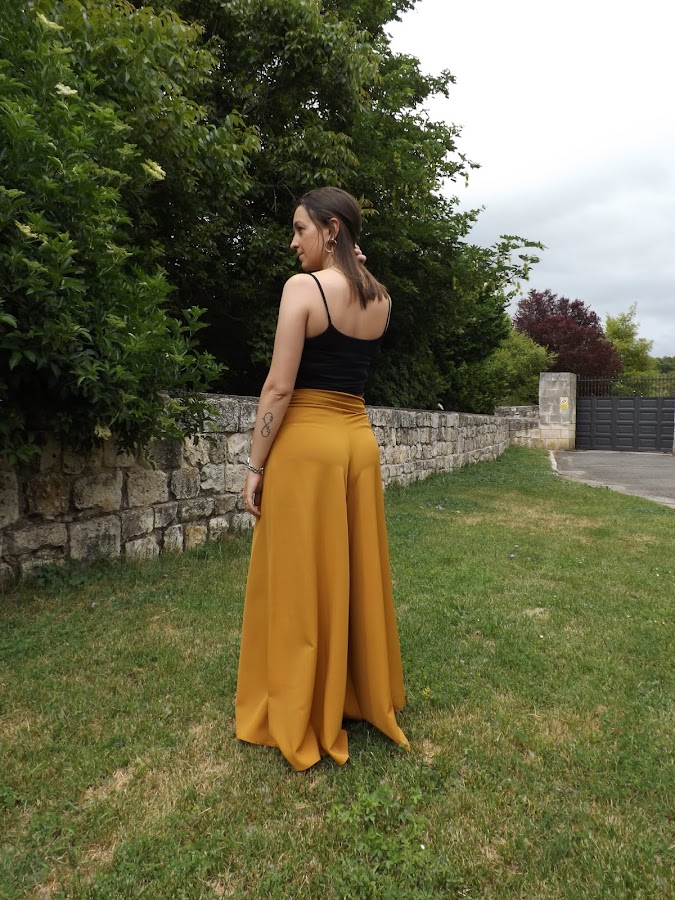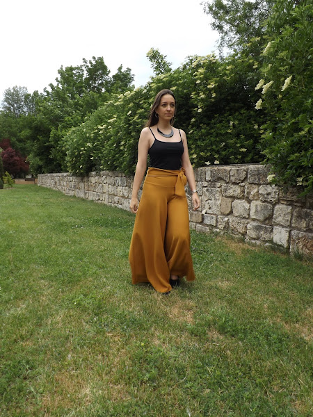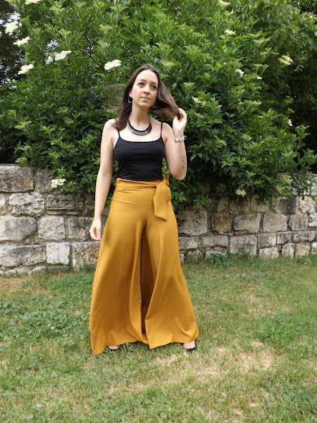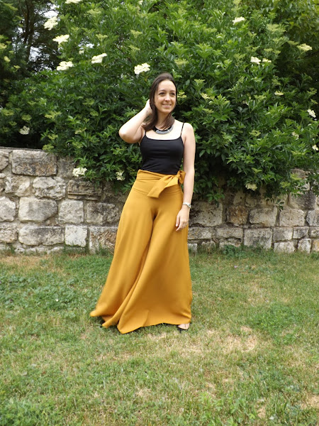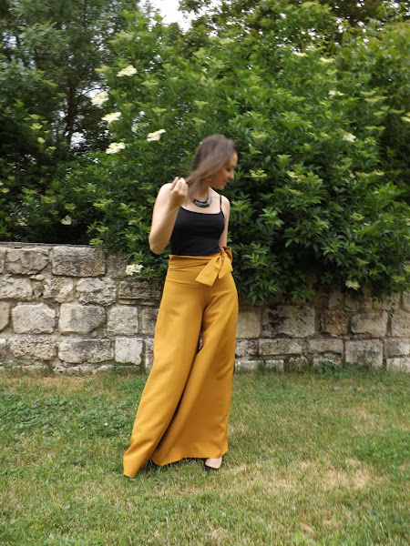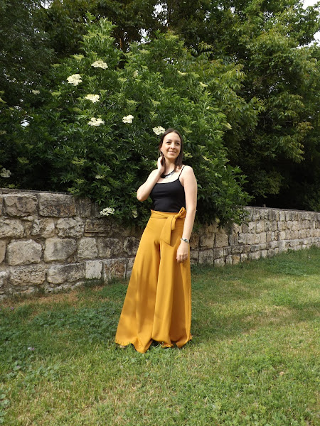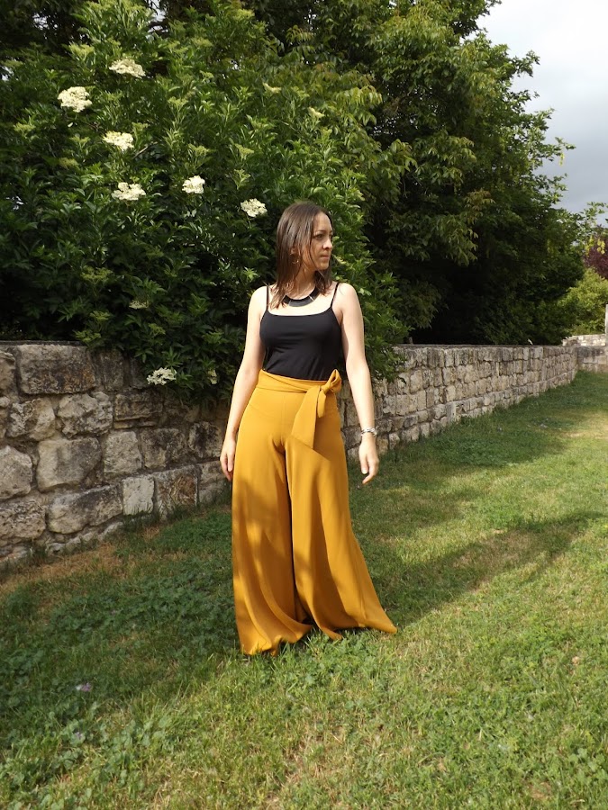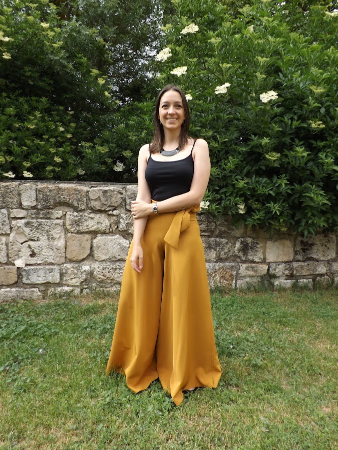Hoy os muestro este pantalón palazzo mostaza con lazo en la cintura hecho por mí.