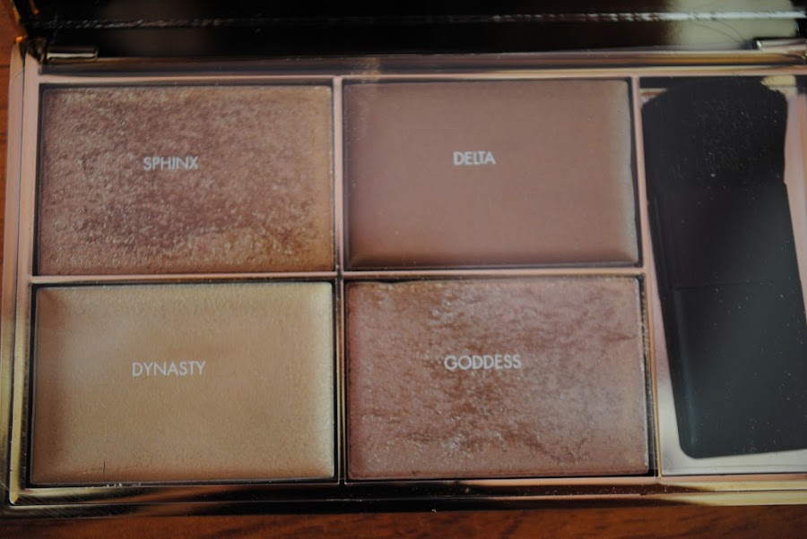 En cuanto al producto en sí deciros que presenta cuatro iluminadores diferentes. Dos de ellos en crema y los otros dos en polvo cocido. En este caso Dynasty o Delta serían en crema y Goddess y Sphinx en polvo. (De verdad, los nombre son superacertados, me encantan). También te viene un pequeño pincelito para aplicarlos pero en mi opinión es lo peor con diferencia ya que es demasiado duro y compacto para un iluminador.