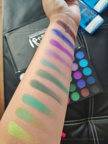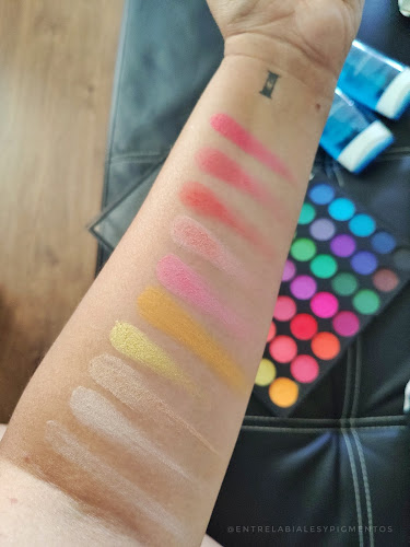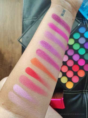 Los tonos nudes son los menos pigmentados y como ya he dicho los rojos-rosas-turquesas los más pigmentados. Y todo eso SIN prebase de ningún tipo.