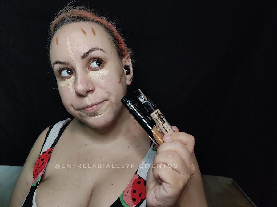 -Después he usado dos prebases, primero el bálsamo de Pixi "Rose Flash Balm" que le da ese toque como llaman ellos de "rostro despierto" y después he usado en las zonas donde tengo los poros más abiertos el primer "Skin Liar" de Elizavecca, es decir zona de mejillas, frente, naríz y mentón.