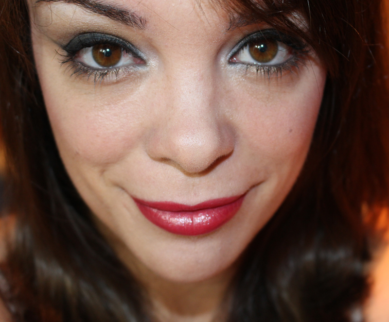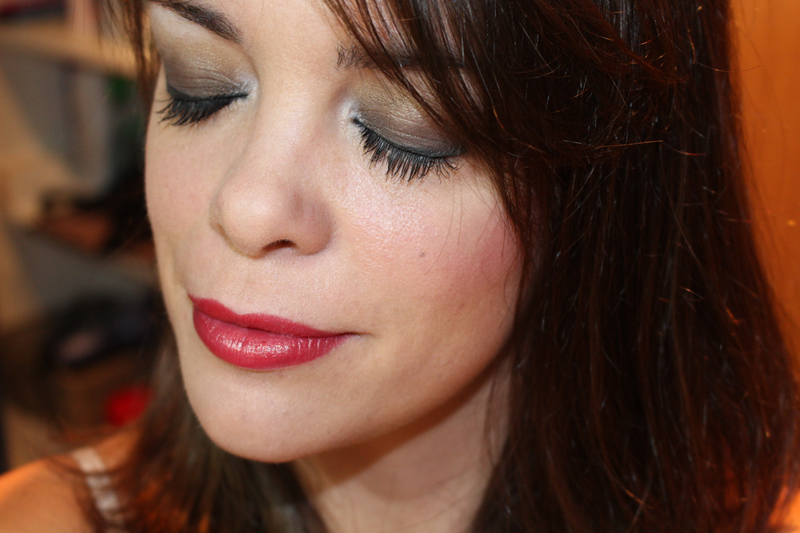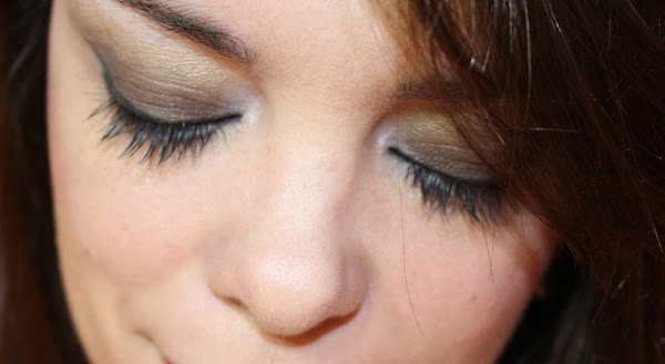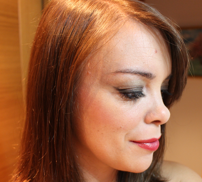 Elegí el tono verde militar como base del ahumado y lo combiné con el dorado, el blanco para iluminar el lagrimal y el vainilla para el arco de la ceja, así que usé los cuatro primeros tonos de la paleta y me encantó el resultado. Y luego con el negro, me hice el eye-liner bastante grueso pero difuminado, ¡así me quedó!