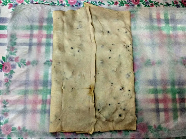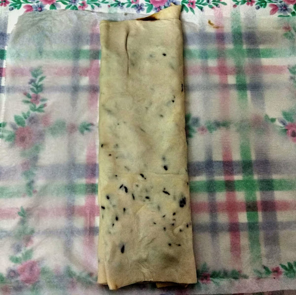 Doblamos ambos extremos de la masa hacia el interior hasta que se junten en la mitad del hojaldre. Después juntamos ambas mitades.