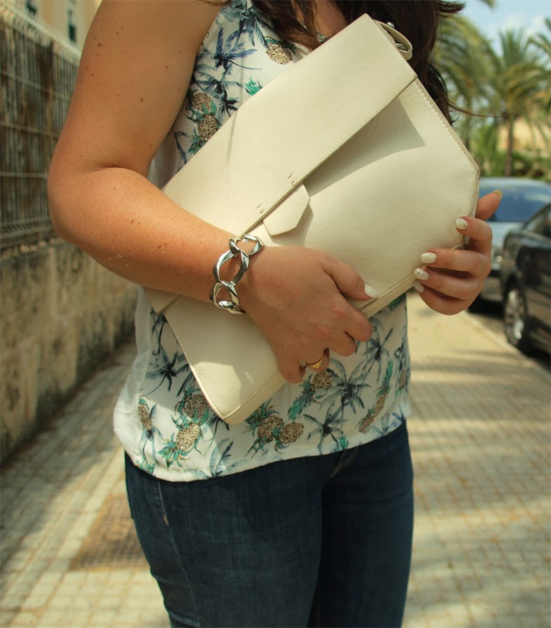 Happy friday! Today I will show you a look with a tropical touch, I shaw you this t-shirt some days ago. This time I combined it with jeans and silver sandals, I love them!! The landscape accompanies very week the look, palm everywhere haha. Do you like this look?