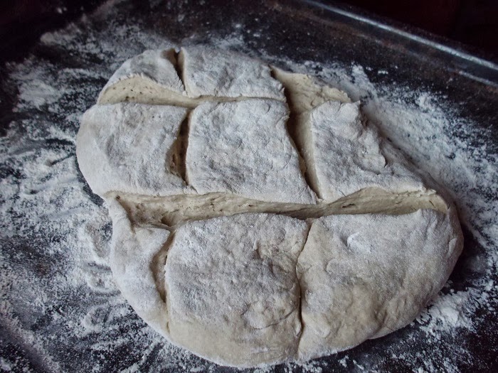 Da forma al pan, en este caso yo he hecho una barra y una torta. Dale los cortes y tápalos. Deja que reposen hasta que el horno esté caliente y hornéalos hasta que esté hecho, más o menos unos 30 minutos.