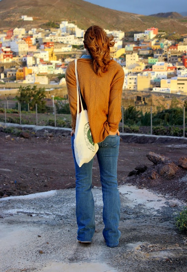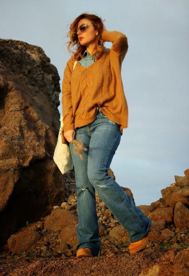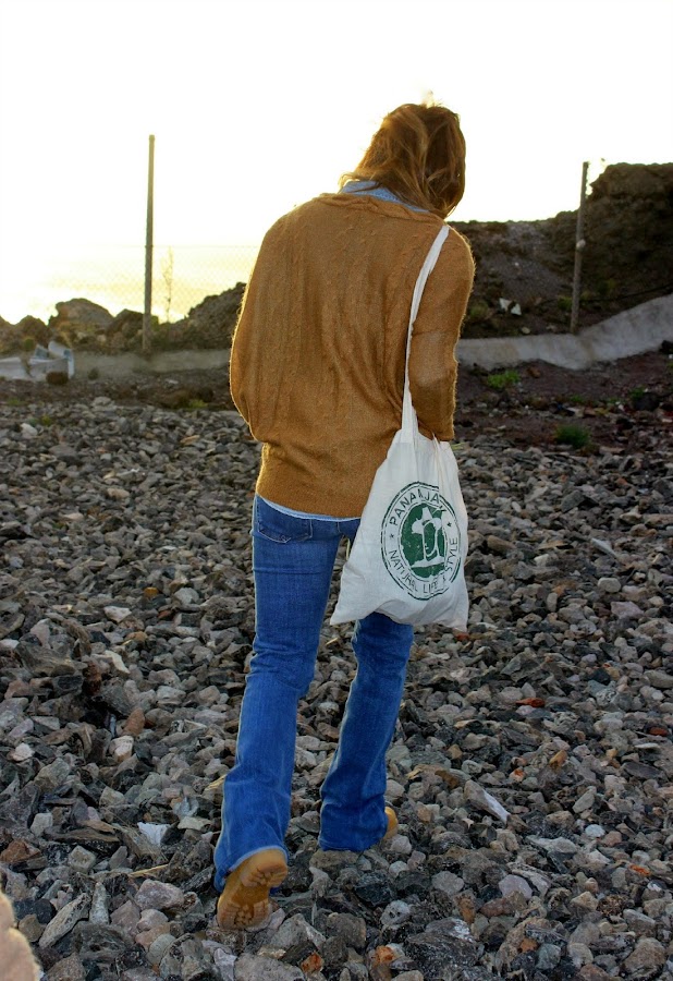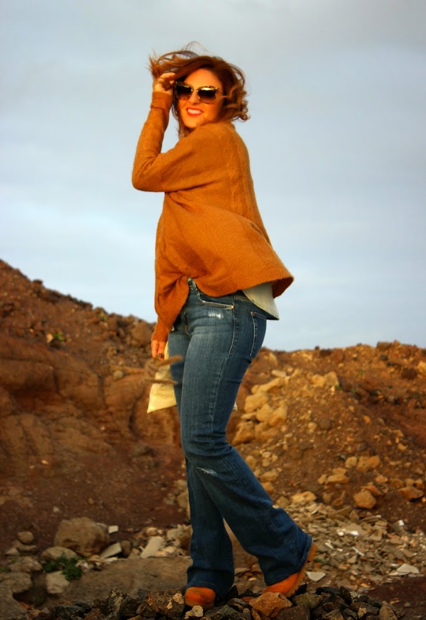 Los vaqueros de pata ancha son de estas rebajas y le subí el vuelto, pero cometí un error lo marqué con unos tacones y al ponerme los botines iba rozando todo.