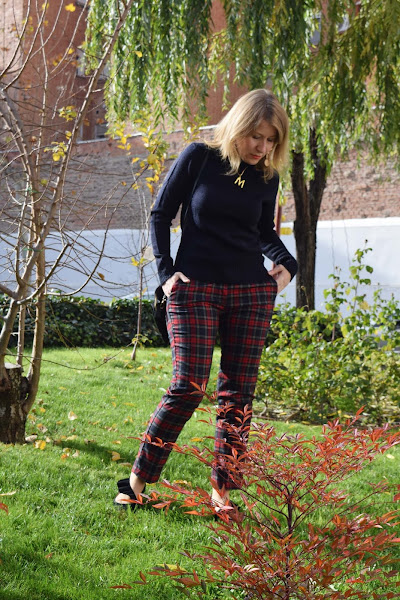 Tanto el pantalón como el jersey son de temporada, básicos que podéis encontrar en todas las tiendas, sobre todo ahora que vuelven a llevarse con fuerza los cuadros.