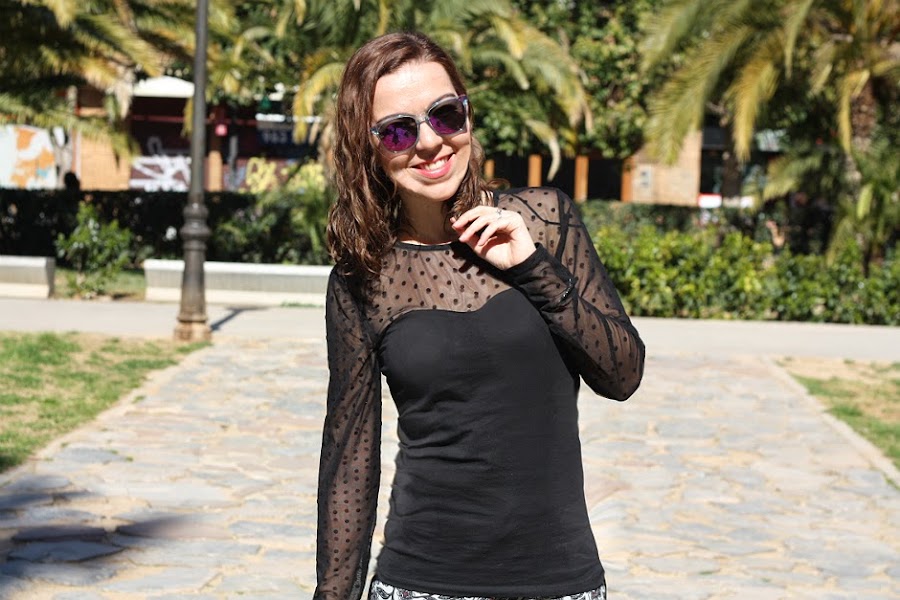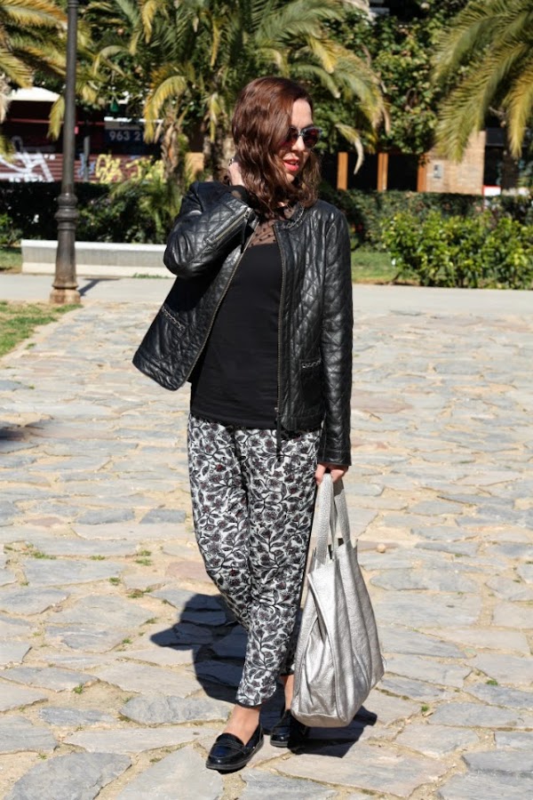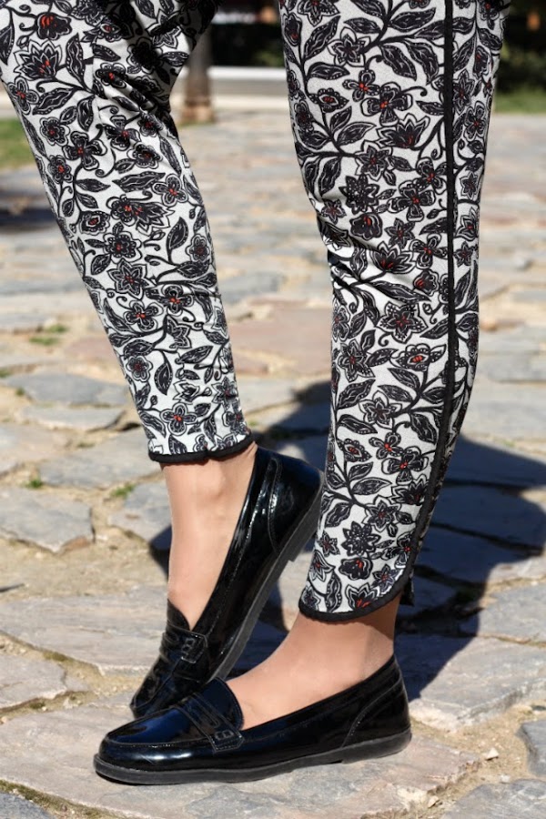 El look de hoy es cómodo, con mis nuevos pantalones de tela floreados y unos mocasines acharolados, que de vez en cuando se agradece bajarse de los tacones y recorrer la ciudad ¿verdad?