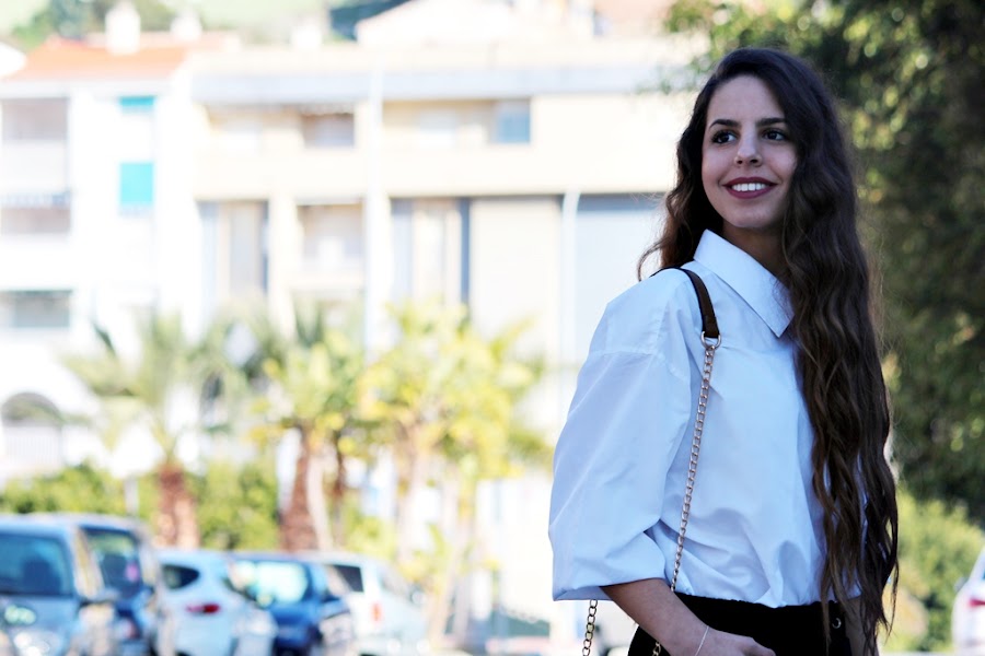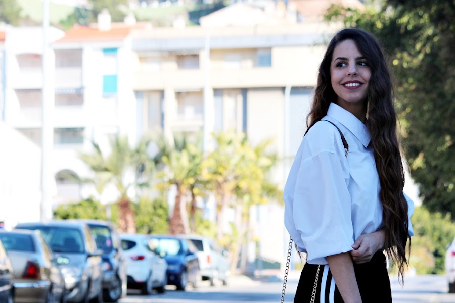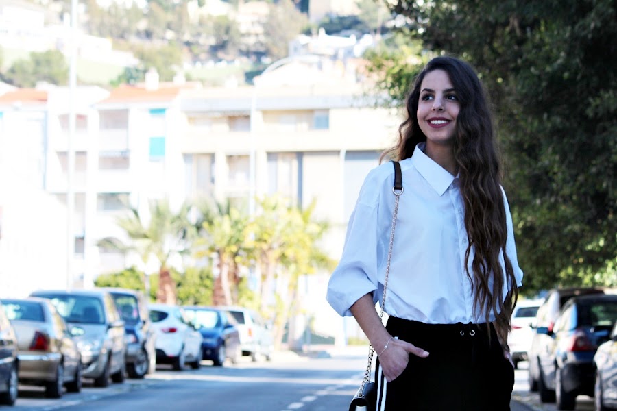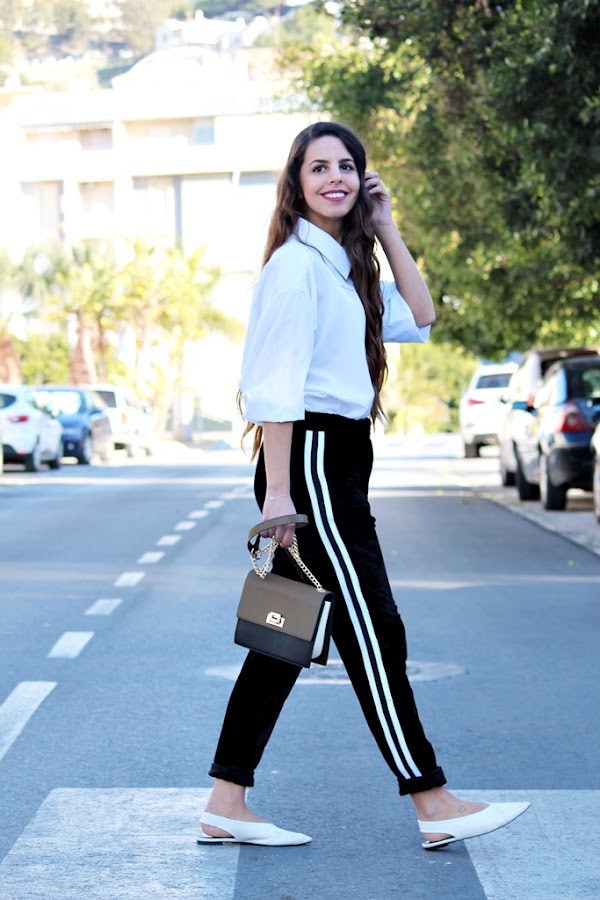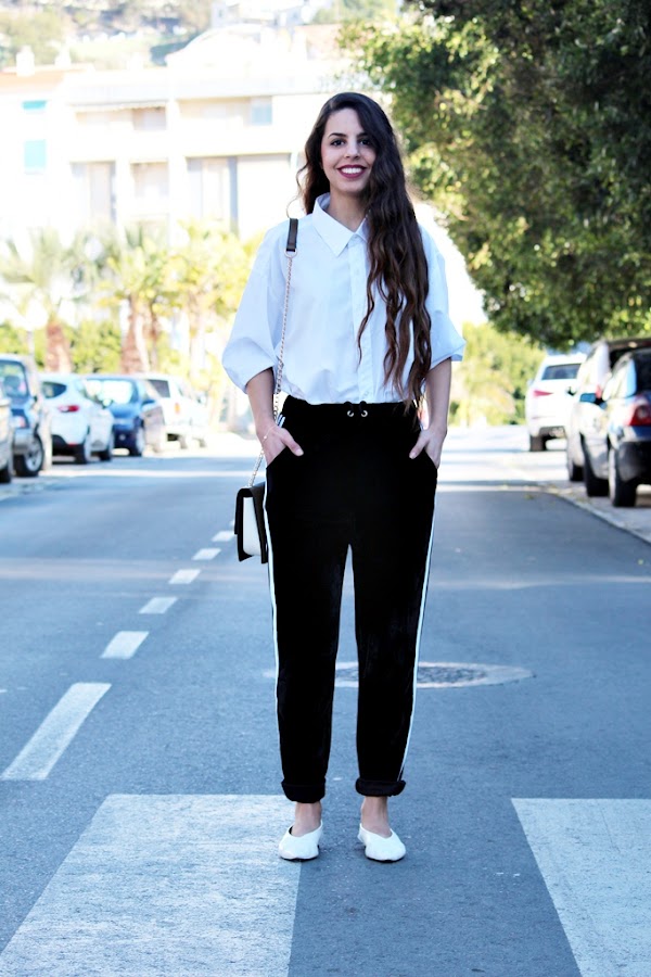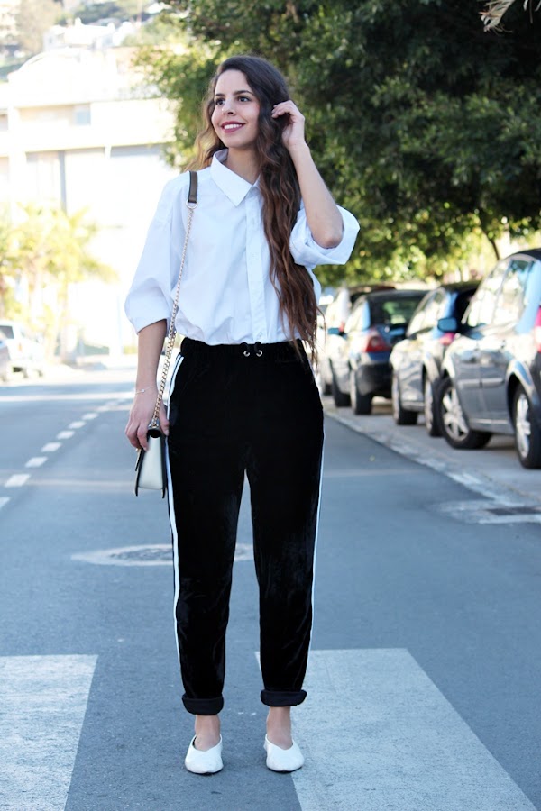 Y bueno hoy os enseño un outfit muy cómodo. Utilicé un pantalón de terciopelo con banda lateral que me pedí en Gamiss. Es un pack de chándal, venia con la chaqueta pero no me la suelo poner. Me elegí la talla M y va genial para quien use una 34-36. Tiene goma en la cintura y se ajusta muy bien al cuerpo. Es de terciopelo con la banda lateral a un lado de color blanco y pitillos.También os lo enseño en un haul de Youtube. Lo combiné con una camisa oversize de Stradivarius de nueva colección.