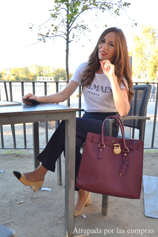 Como ya os comenté hace unos días, no se qué me ha dado este verano por el azul. No es que no me guste este color, pero es que no sabéis la de ropa que me he comprado. La última este top de nueva temporada con escote Bardot que tiene un fino estampado de rayas blancas y azules. Lo estrené junto con unos pitillos blancos, palas marrones y mi nuevo bolso de Michael Kors. Gracias por vuestras visitas ...