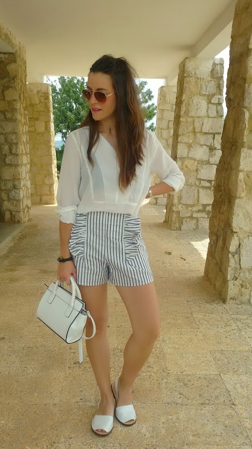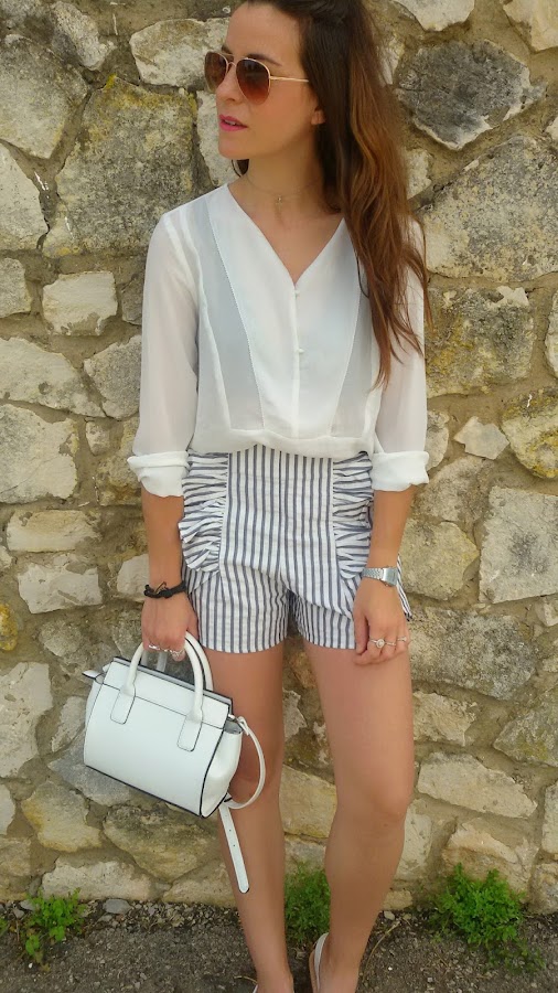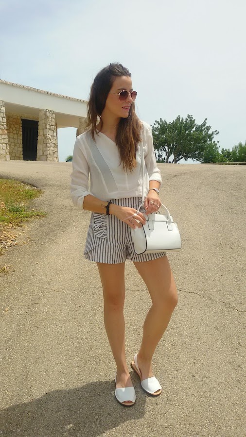 Combiné los shorts con esta camisa blanca de gasa de Zara también, pero de hace un par de años, y es que el resultado me gustó mucho.Además debajo me puse un sujetador lencero porque se transparenta un poco y me gustaba esa mezcla. Un look casi total white , sencillo , fresco y divertido :)