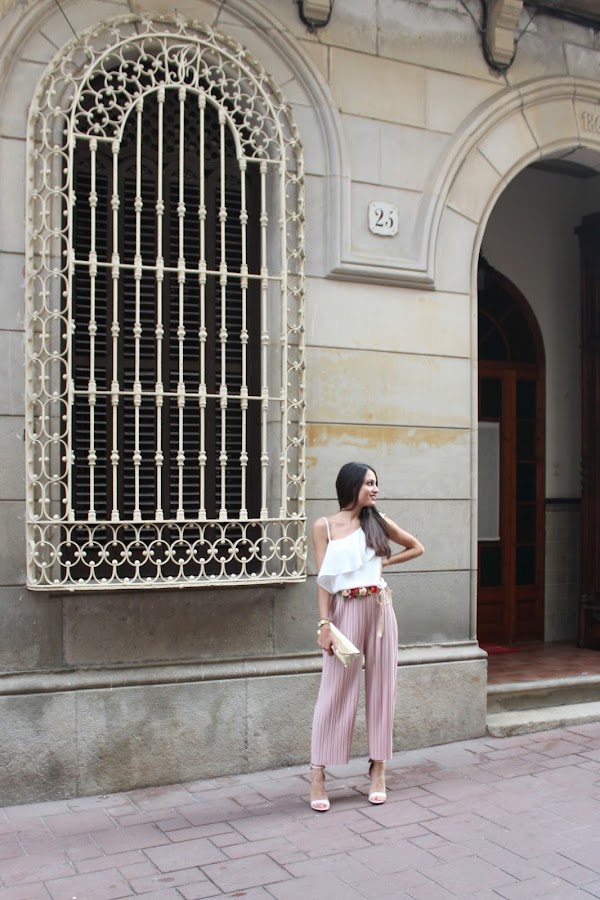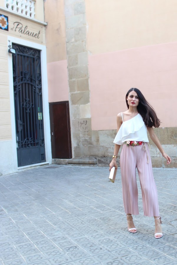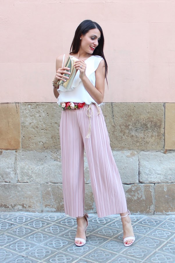Me decanté por este precioso pantalón culotte en color rosa de SHEIN junto con mi blusa blanca de CAYRO WOMAN y un cinturón floral!