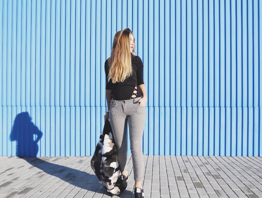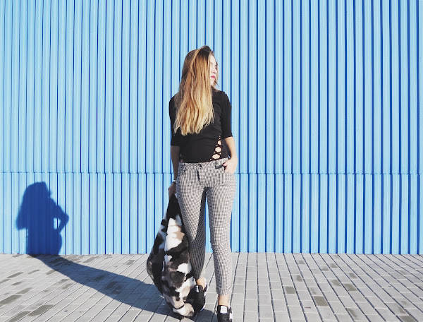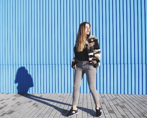 Ademas llevo mis nuevos pantalones con print vichy y mi abrigo de pelo sintético que tanto me gusta.