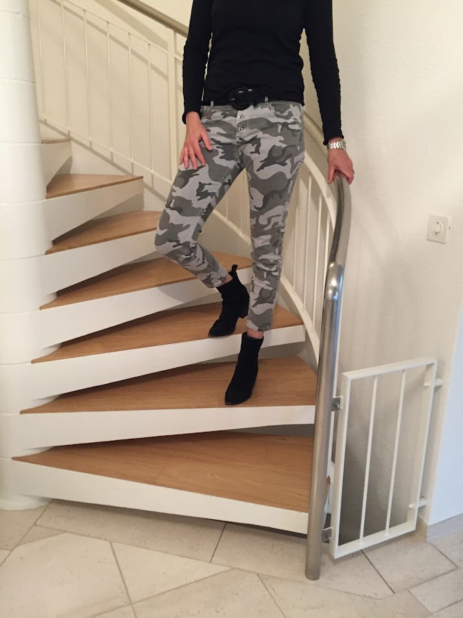Esta mujer, canaria, amiga estupenda y de metro ochenta de altura no pasa inadvertida aunque se ponga este pantalon de camuflaje.