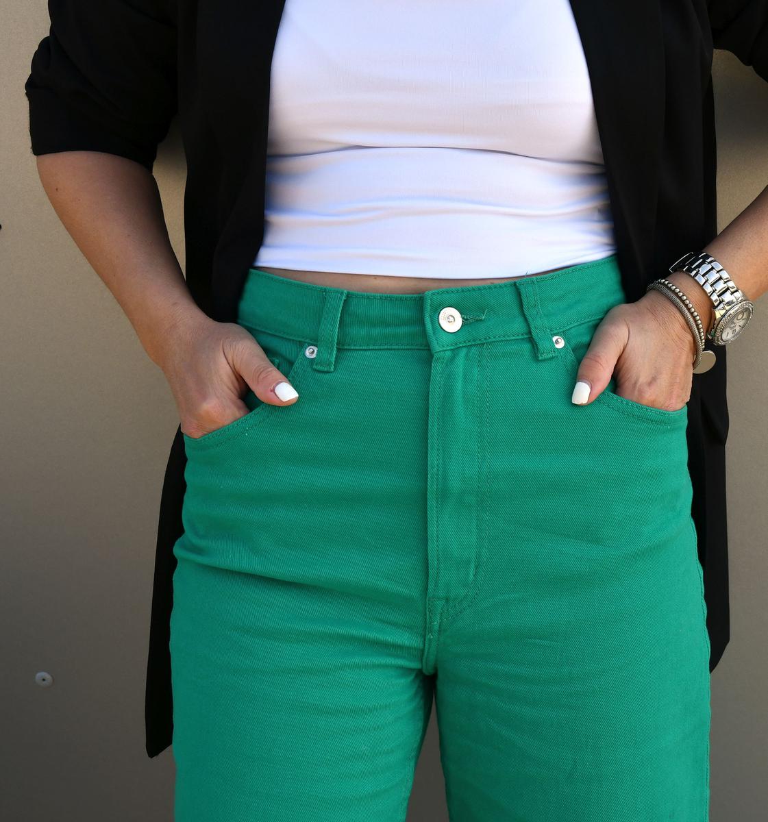 El pantalón verde no es fácil de combinar como los jeans o pantalones negros, y aunque funcione con colores neutros para que estos se lleven todo el protagonismo, la idea para esta temporada, es mezclarlos con otros colores llamativos o looks monocromáticos para hacer combinaciones favorecedoras y que transmitan mucha alegría.