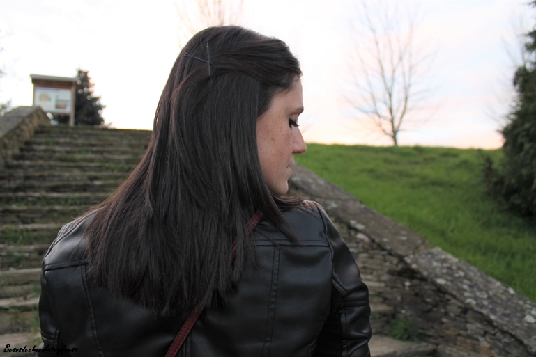 I combined it with black tones like basic neck turtle sweater, white sneakers, black hat, biker and to give her some baggy color in burgundy. what do you think? Also I show you my new haircut, freshly ironed.