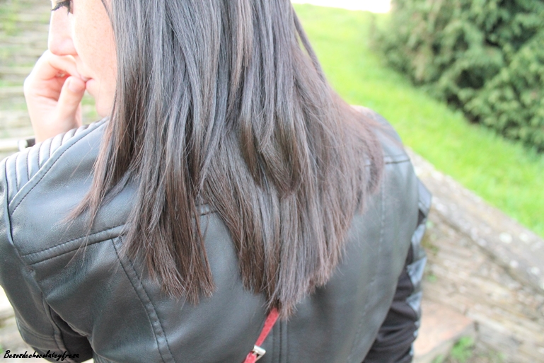 Lo combiné con tonos negros como sweater básico cuello tortuga, sneakers blancas, sombrero en negro, biker y para darle algo de color bolso en burdeos. ¿qué os parece? Además os enseño mi nuevo corte de pelo, recién planchadito.