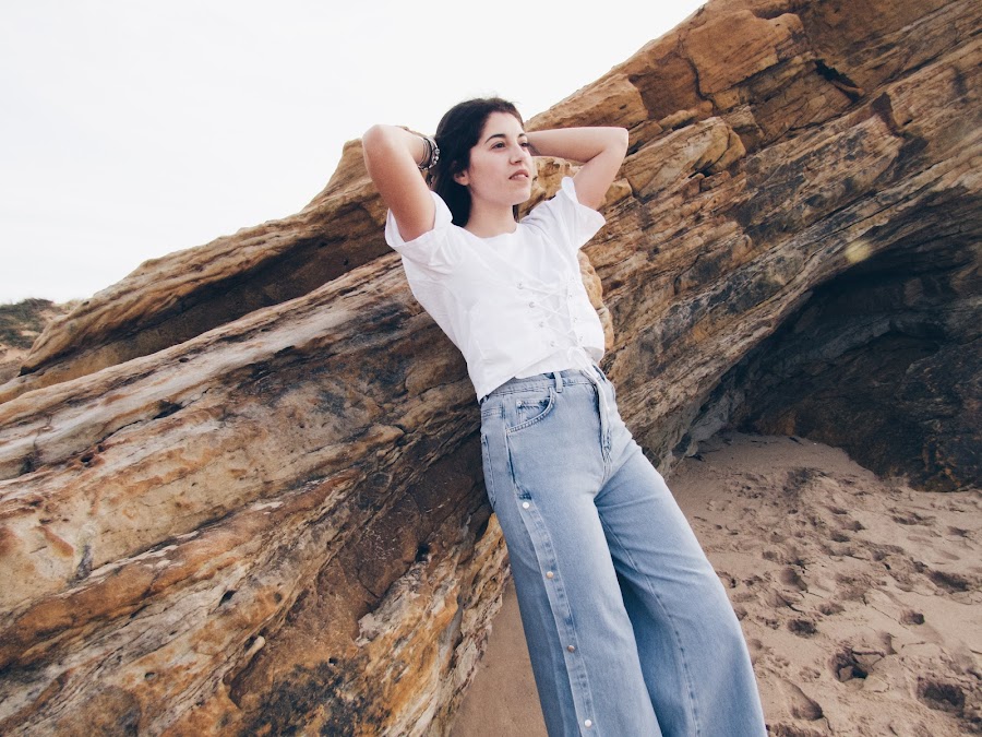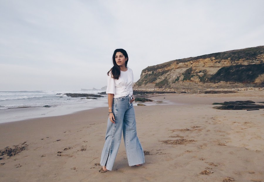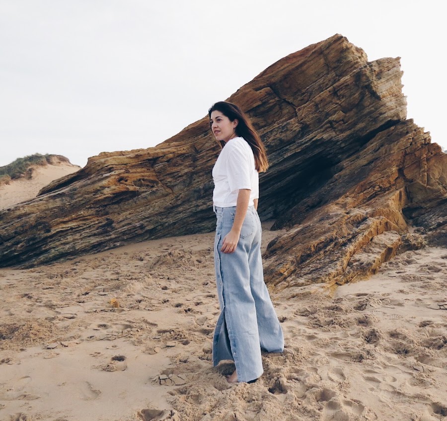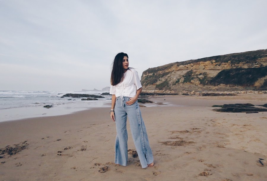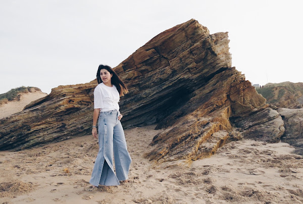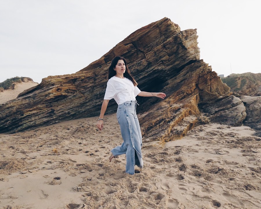 I also wear jeans that I love, they are hip jeans style at the waist, with side openings that allow you to play a lot with them and very wide down, the truth is that they feel great.