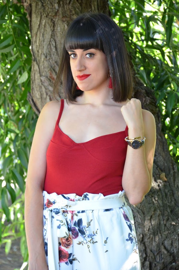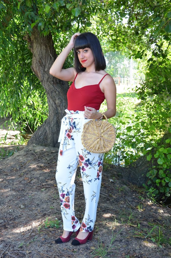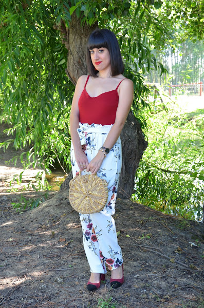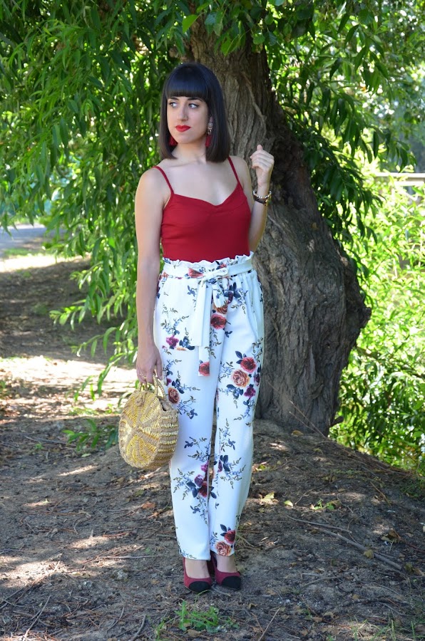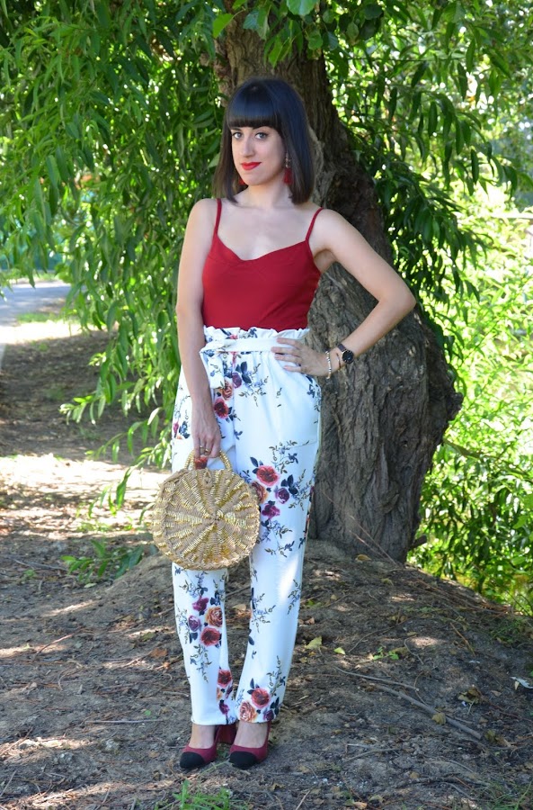 Los he combinado con pendientes y body color vino, ambos de Zaful. El capazo es de Rosegal, también es una pasada. Llevo todo el verano buscando un capazo de este estilo y por una cosa o por otra no me acababan de convencer, pero este con detalles dorados es perfecto.