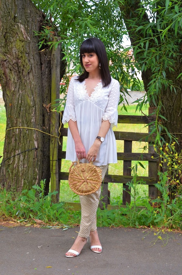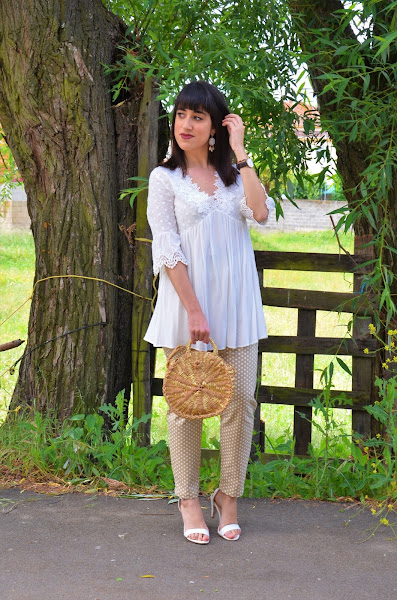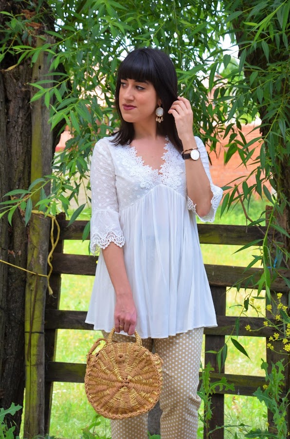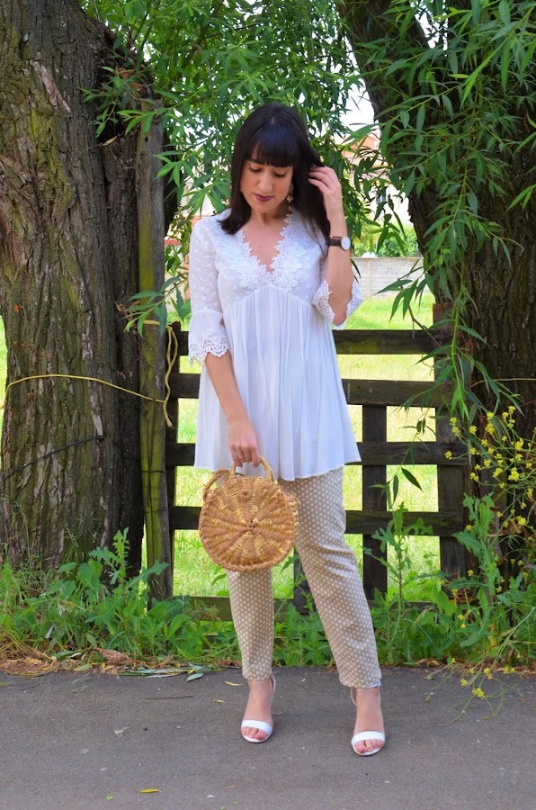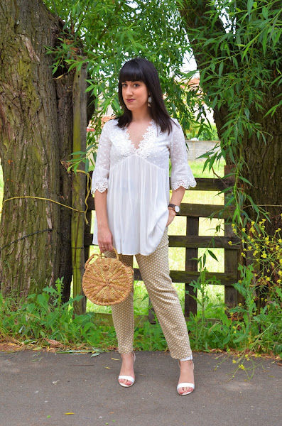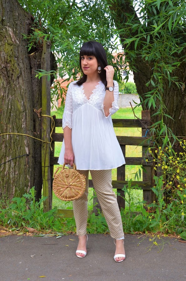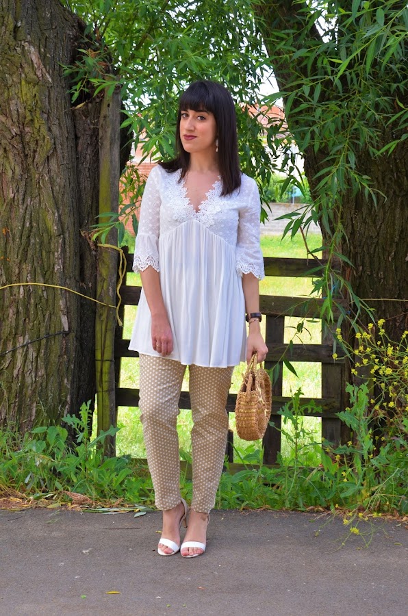 Por el momento os enseño el look de hoy. Ya sabéis de sobra que los lunares me encantan en todos los tamaños y colores y también en todas las prendas posibles. En esta ocasión me he animado con estos pantalones en verde ocre con lunares en blanco. Son de Shein, y la verdad que me encantan aunque si hubiera pedido una talla menos me hubiera venido mejor.