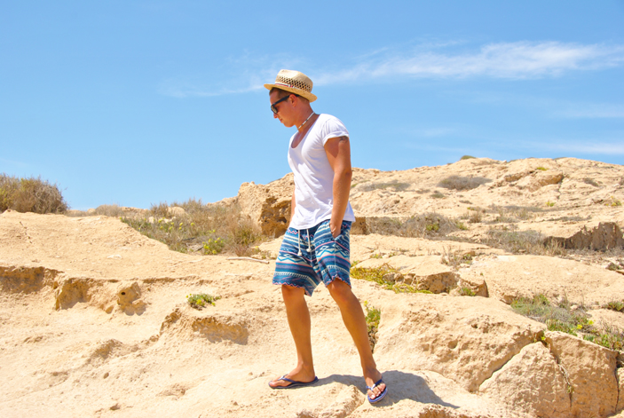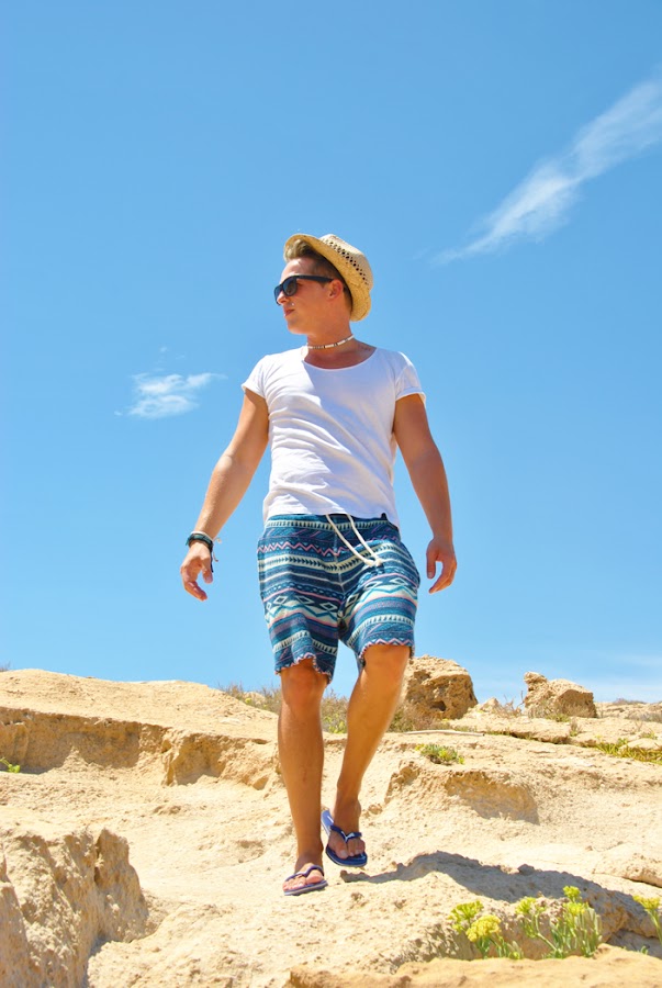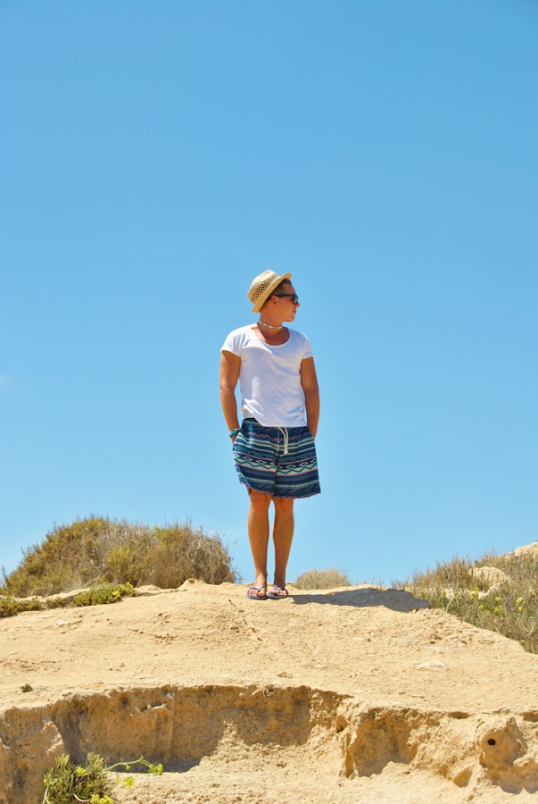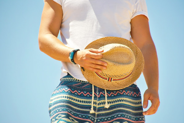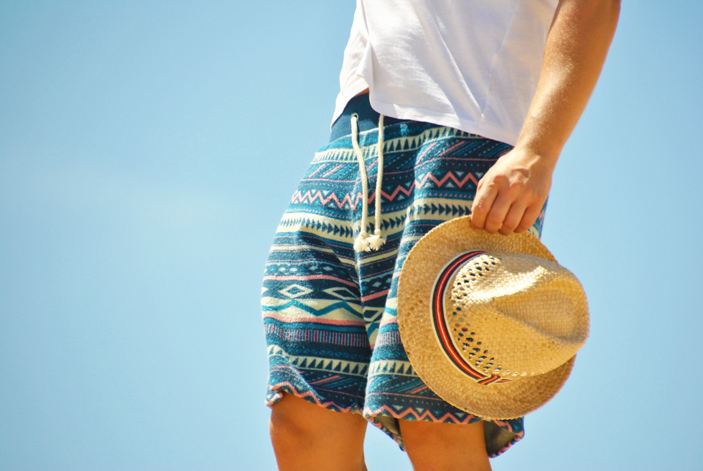 La explosión de colores y sus líneas geométricas inundan nuestros armarios verano tras verano. Yo me compré estos pantalones cortos en H&M y los utilicé para conseguir un divertido look playero combinándolos con una camiseta básica blanca, sombrero de paja, pulseras y collar.
