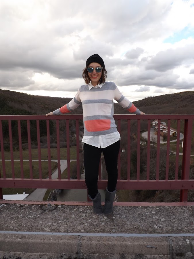 Estrenaba jersey y camisa, ambos regalos de mi cumpleaños, unos pantalones negros y complementos en la misma gama de colores.