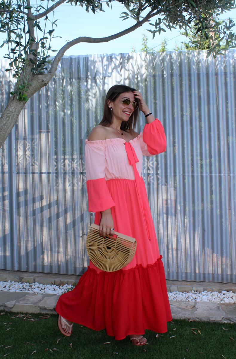 Y es que no puedo decir que mi amigo no tuviera razón, porque el vestido que forma el look de hoy sin duda parece una paleta de color que se ha abierto por la zona de los rojos. Empieza con un rosa clarito para pasar a un salmón y acabar en un rojo intenso.