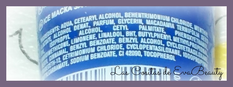 Por supuesto acepté, además de probar un producto nuevo, que ya el nombre me llamó la atención por ese efecto ice/frío en el cabello, yo utilizo tintes y decoloración en el cabello, y ésta mascarilla está indicada especialmente para ese tipo de cabellos, maltratados por productos químicos (tintes, decoloraciones...), cabellos maltratados por el uso del planchado y secado del pelo, en definitiva, cabellos secos, estropeados y dañados.