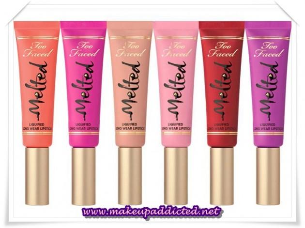 - Labiales líquidos de larga duración “Melted”: estos nuevos labiales líquidos vienen en seis tonalidades diferentes y prometen permanecer en los labios como si de una mancha se tratase, tener la intensidad de los labiales líquidos y el brillo de los glosses.