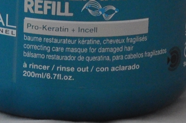 Mascarilla "pro-keratin refill" de L´oreal, bálsamo restaurador con keratina para cabellos fragilizados.