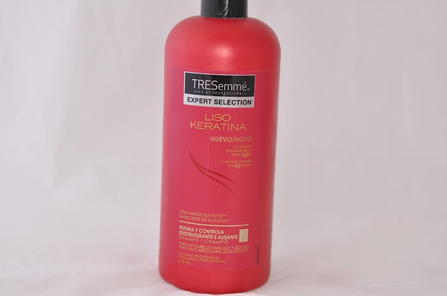 Champú "liso keratina" de TRESemmé, repara y controla el cabello para dejarlo suave y manejable.Contiene menos sulfatos y es apto para cabellos teñidos.
