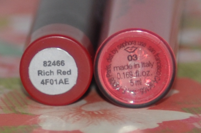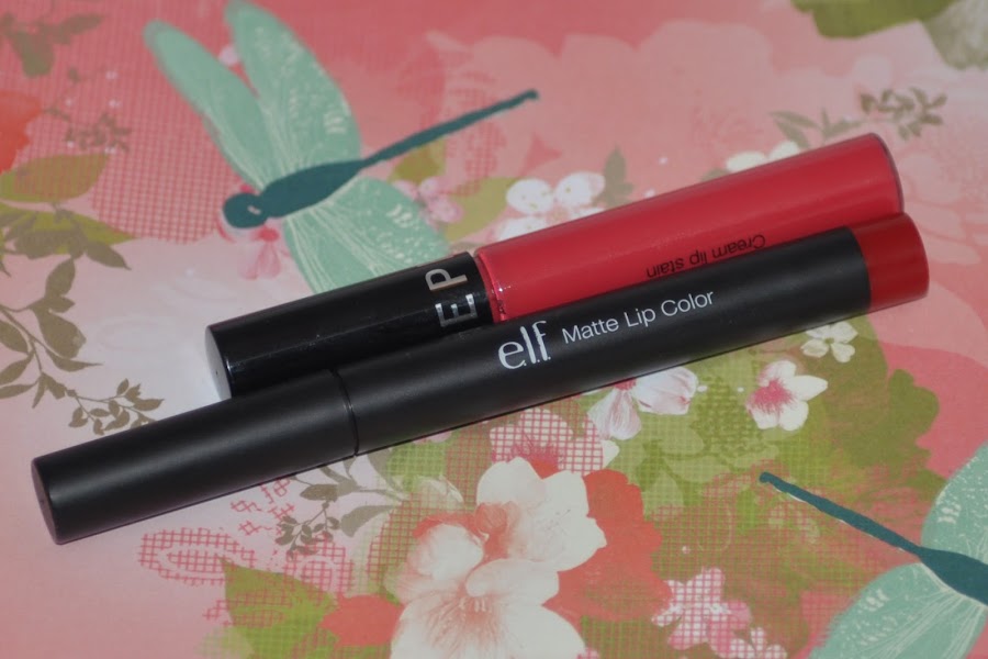"Lip Stain" número 03 de Sephora, que yo le utilizo de labial propiamente dicho,y el labial formato lápiz "Matte Lip Color" en el tono Rich Red de Elf,que yo lo uso a modo de perfilador y le aporta al de Sephora hidratación.