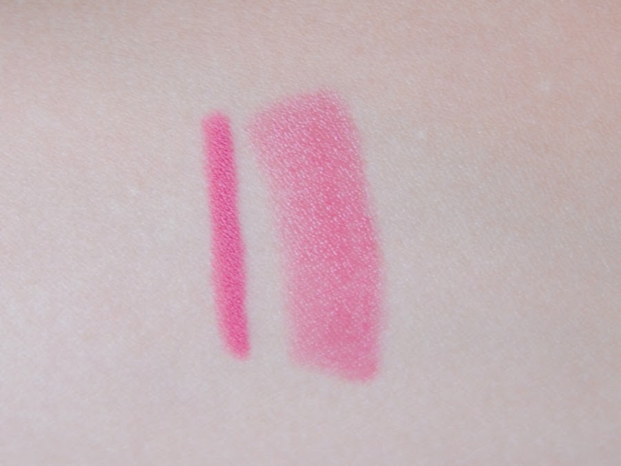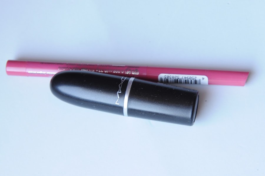 Se trata del labial lustering de Mac y su pareja el perfilador sweet heart de Essence, lpos dos son rosa con base "azulada" rosa fuerte y el de Essence es el perfilador ideal