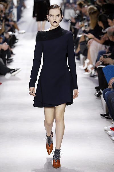 El equipo creativo de Dior es el encargado de esta nueva colección tras la salida de Raf Simons. Con un carácter algo gótico y con un estilo entre retro y futurista aparecen prendas marcando la silueta, largos por la rodilla, escotes inexistentes, estampados oscuros y melancólicos. Una colección con fondo austero que no acaba de convencer..